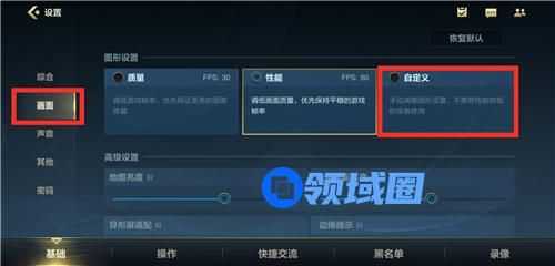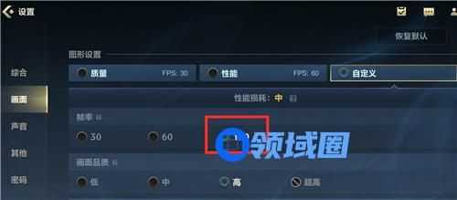 进去以后切换至【画面】,可以看到有质量、性能、自定义三个选项。
