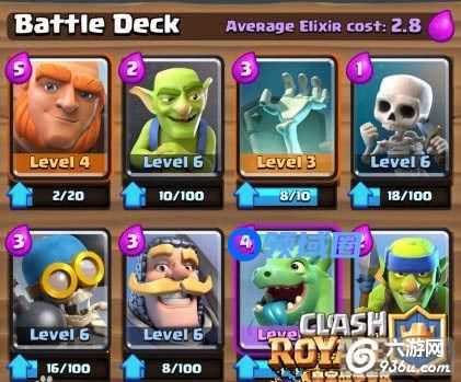 卡组:巨人+哥布林+墓碑+小骷髅+炸弹人+骑士+飞龙宝宝+长矛哥布林
