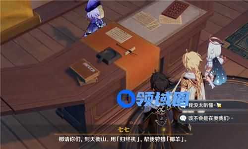 在钟离询问店内是否有卖永生香后,七七表示可以找来永生香,但是条件是帮她【狩猎椰羊】。