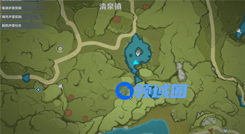 蓝蛙在清泉镇这个地方,大家直接用传送点传送,然后来到下方这个位置,就可以找到了,在石头上面,还是很隐蔽的。