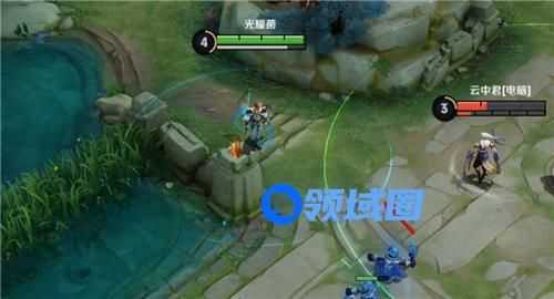当这个光环的边缘,触碰到首位敌方英雄后,就会获得这名敌方英雄的视野,如下图所示,敌方英雄头上有个小眼睛的图标,说明此时暃获得了他的视野。
