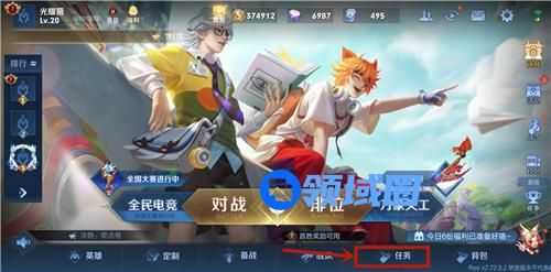 首先从S26赛季版本开始,赛季奖励界面被移到了任务系统,我们先在游戏大厅点击下图所示的【任务】按钮。