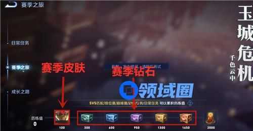 最后就会来到赛季奖励界面,只要你有100历练值,就可以点击赛季皮肤图标领取这款皮肤了。后续的3000钻石也是在这个界面领取的,只需要达到对应历练值就行了。