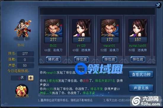 (3)若玩家选择排位战,当角色与目标挑战,并且角色排名高于目标排名,挑战成功,两者排名不变。