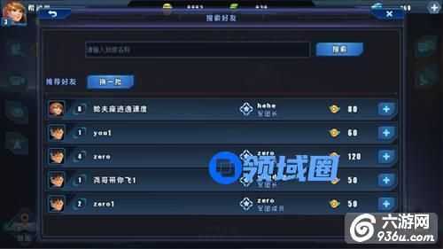 在“搜索好友”界面,我们可以搜索指定名称的好友,也可以在“推荐好友”列表中,点击玩家条目右侧的加号,即可申请添加好友。