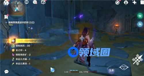 充能后,能量就空了,要回到仙灵的地方充满,再回来。装备层岩巨渊给的灯小道具,靠近紫色石头后,使用这个小道具释放能量将其净化。