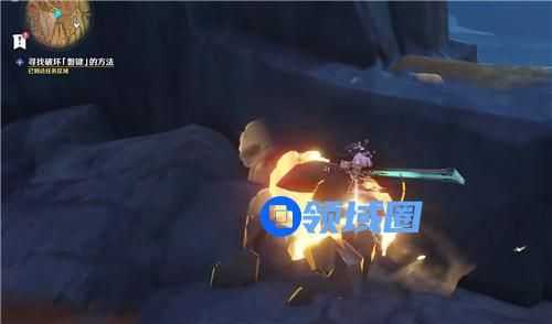 首先接取任务后,在周围找一个下图所示的这种岩石,用双手剑角色击碎会获得一个岩种子。