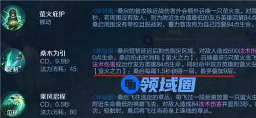 当桑启使用一技能后,会消耗5层萤火之力,释放出5只萤火虫,这五只萤火虫会飞向最近的英雄单位,如果是友方英雄就是五段治疗,如果是敌方英雄就是五段法术伤害。