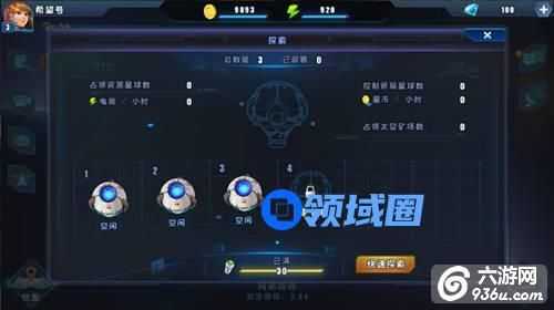 探索界面的上部显示的是我们当前探索相关的数据信息:探测器总数,占领星球数量,资源输送速率等。