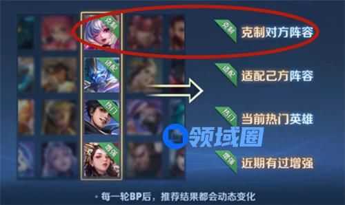 首先英雄右上角如果带克制的字样,就说明这个英雄是克制对面阵容的。这个克制并非空穴来风,是系统根据对面锁定的英雄,给出的一种选将参考方案。比如对面选了张飞这种盾辅,你玩的是坦边位,系统就会推荐你玩吕布。
