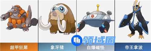 T2:路卡利欧、仙子伊布、幽尾玄鱼、劈斧螳螂、超甲狂犀、象牙猪、自爆磁怪、帝王拿波、火爆兽、月亮伊布、卡比兽