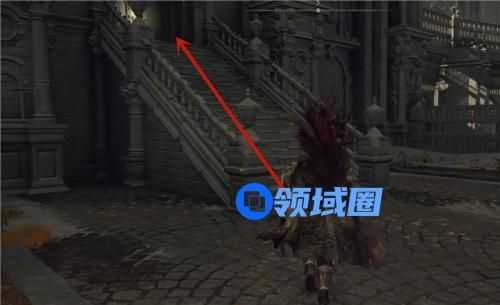 首先传送到【王城的大道旁露台】这里,往下图所示的台阶上走。