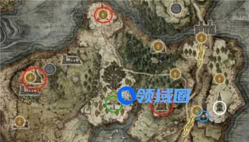 打完满月女王后,再去打红石城的碎星将军,打完葛瑞克直接去打碎星将军的话,难度跨度就有些大了。另外如果你南方的啜泣半岛没有去过的话,建议把啜泣半岛探索一遍,这个岛上的好东西挺多的,三个圣杯滴露,一个黄金种子。(PS:红圈是滴露,蓝圈是乌龟盾,白圈是记忆石,摩恩城还产出2级强化石。)