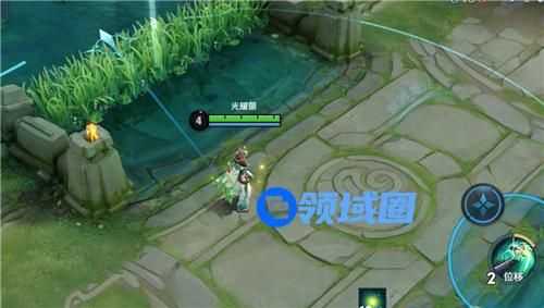 如果你想位移到草丛之外的地方,也不是不行,只需要用大招在想要位移的位置处放一个草丛,然后就能对着这个生成的草丛使用二技能进行位移了。(PS:敌方桑启大招生成的草丛,也是可以用二技能飞过去的哦!)