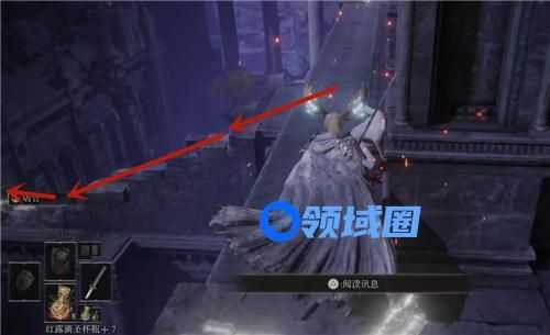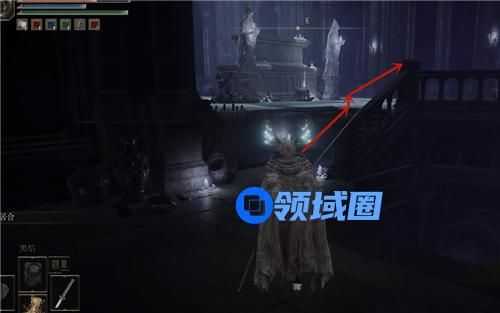 来到黑夜神域后,沿着屋檐走一段路,再往下图方向走。