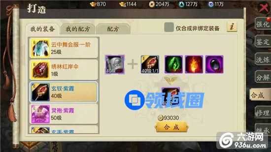 然后大家都知道 紫色的装备好些 所以有的玩家会问紫色装备怎么弄可以如下图 升级哦