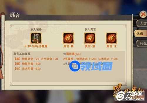 装备真言可谓是实力的象征,要想你的装备获得真言加持,需要满足80级以上的等级需求,此时即可通过在装备上镶嵌真言石以获得单字真言的属性加成了。当然,一字真言所附加的属性固然客观,但是若可将单字真言收集成句并附于套装之上,则可激活更加强大且稀有的属性。