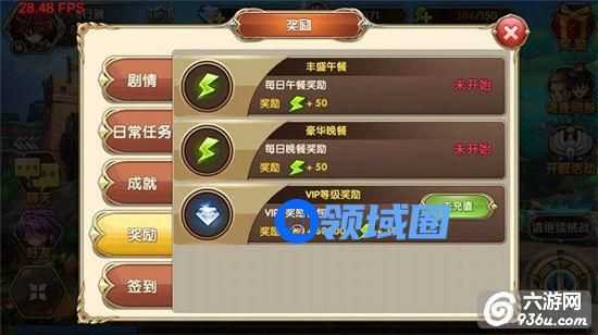 奖励:可以领取到每天中午和晚上额外送的体力和VIP奖励