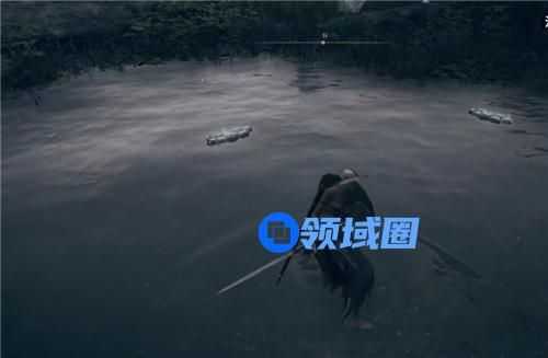 第三只:塔右手边的水潭里,这只乌龟是隐身的,所以你要对着空气砍一刀才行,挥刀位置如下。