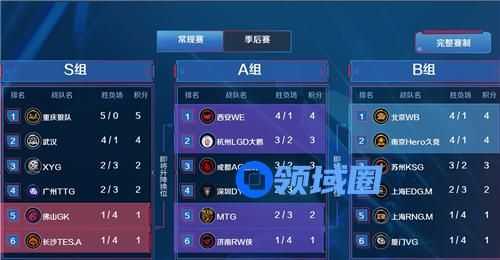 王者荣耀KPL春季赛积分榜