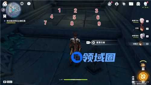 将8个石板还原成和密室看到的天花板图案一样即可,在初始状态下,依次移动4、7、8、9、6、5号位置的石板。