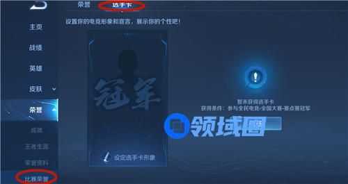 首先在你获得全国大赛的的选手卡后,要去个人主页-荣誉资料-比赛荣耀这里设置选手卡,具体位置如下图所示。