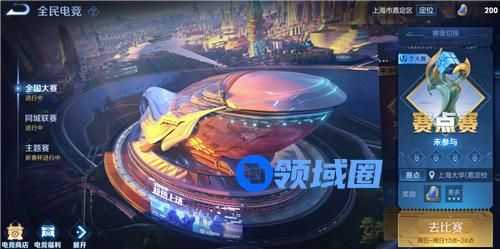 全国大赛就是全民电竞中的一个全国赛事,在匹配赛左边就是入口,想打全国大赛需要先定位自己的赛事战区,然后去报名和参加赛点赛,赛点赛之后才是区级赛,想要拿到一个冠军还是挺不容易的。