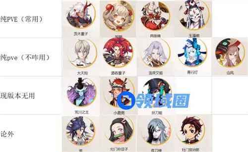 总而言之,式神优先就挑T0和T1的练就好,毕竟泛用性高可以用很久,其他式神如果是符合XP,也是可以练一练的,就算是T2也有出场的机会。