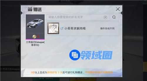 总而言之,兰博基尼只能送给相同平台的好友,并且这个好友还是要添加三天以上的,不存在即时送这一说。