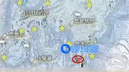 第一只冰六尾:直接传送到冰山战场,来到雪崩坡下图所示的红色圈圈位置。