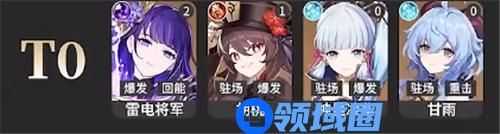 T0:雷电将军、胡桃、神里绫华、甘雨