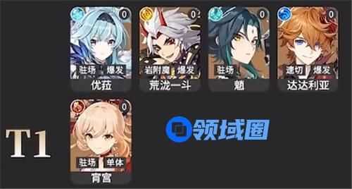 T1:优菈、荒泷一斗、魈、达达利亚、宵宫、八重神子