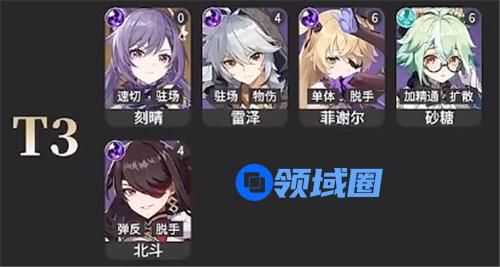 T3:刻晴、雷泽、菲谢尔、砂糖、北斗