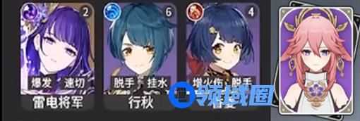 T0:八重神子、雷电将军、行秋、香菱