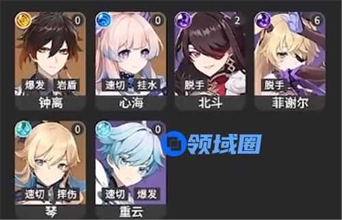 T2:钟离、心海、北斗、菲谢尔、琴、重云