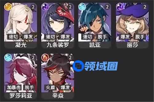 T3:凝光、九条裟罗、凯亚、丽莎、罗莎莉亚、辛焱