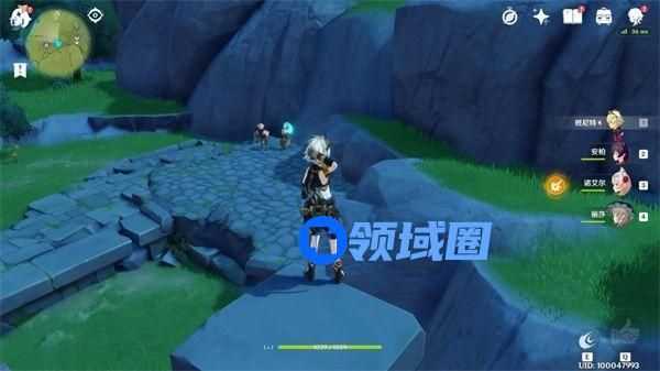 第二个风仙灵在右边的石壁下,解决围住风仙灵的 3 个丘丘人即可。