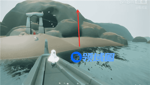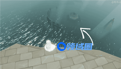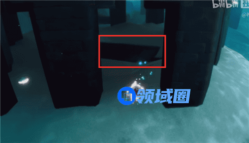 第二个比较难找,首先我们拿到第一个光之翼后转身看到如下图地方,前往箭头指的地方的下面,记住是在水下。