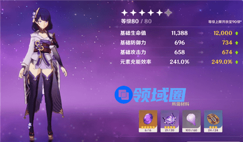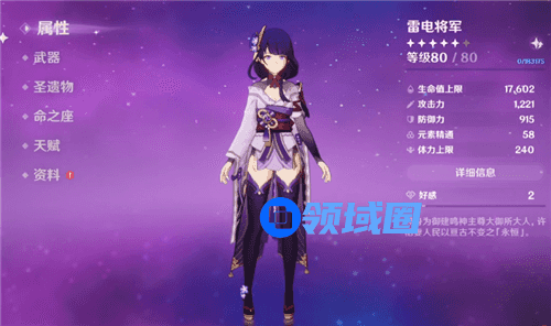 最终充能效果提升32%,雷电将军非常依赖充能效率,因为大招需要高达90能量,所以说充能效率对于雷电将军来说是非常关键的,所以雷神的突破就是增加充能效率。