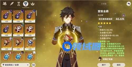 言归正传,钟离的圣遗物搭配其实非常简单,就是两种,一种是半肉输出型的,一种是辅助型的,两个都可以玩,看你自己的选择,小编选择的是玩半肉输出型的。