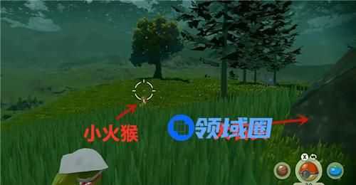 首先闪光小火猴就在【角鹿高岗】基地右上方,一块大石头边上的草地里可以抓,具体位置如上图所示。傍晚和晚上出现的概率更高,各位在傍晚的时候可以过来看一下,看见有棕色的宝可梦就是小火猴了。