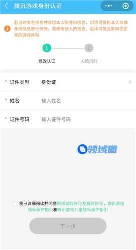 第五步:最后就能重新输入自己的姓名和证件号码了,在详细阅读协议后,点击下一步进行人脸识别后,即可完成实名认证的修改。