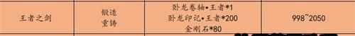 总之王者之剑需要的材料主要有:卧龙卷轴王者x1,卧龙印记王者x200.以及金刚石x80。金刚石一般都是收购获取,虽然挖矿也能获取但太麻烦了。而卧龙材料都是在卧龙山庄的神秘宝箱里面概率获得的。