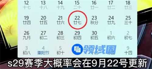 王者荣耀s29赛季会在9月22日正式开启。其实根据以往经验,一般是战令结束之后一周内(特殊情况延迟一周),新赛季就会更新。已知s28赛季战令结束日期是9月18日,而且王者荣耀一般是会在每周四更新,所以得出的结果是9月22日。