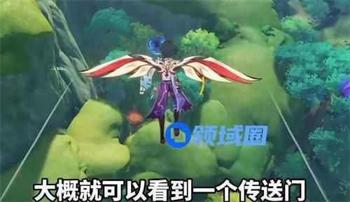 首先我们需要来到靠近翠翎恐蕈传送点的对面的山顶的锚点。来到后直接开启风之翼往翠翎恐蕈方向飞,然后我们会在空中看见一个传送门,然后我们直接进入后。