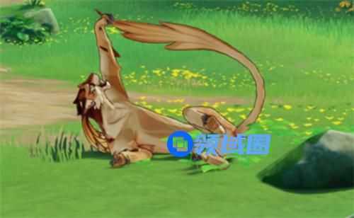 戏弄尾巴:这个只能等,草坪上有趴着的长鬃虎,它的动作就是戏弄尾巴。