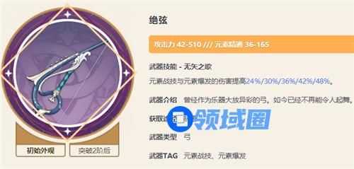 绝弦的副词条加165元素精通,武器特效还能给小技能和大招增伤,可谓是能辅能C,同样是颇为契合柯莱。