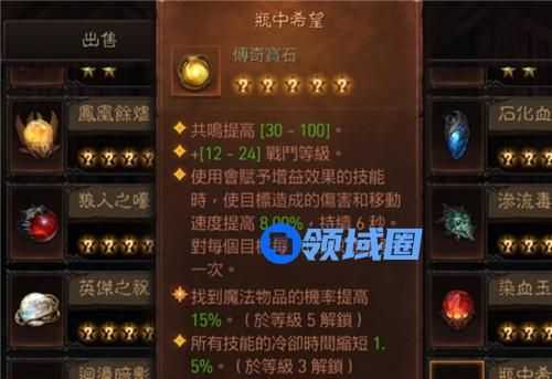 增益和斗志翡翠差不多,不过需要用技能触发,且存在14秒的空档期。虽然可以通过装备的减CD效果,来缩短空档期,但还是无法保证全程生效BUFF。
