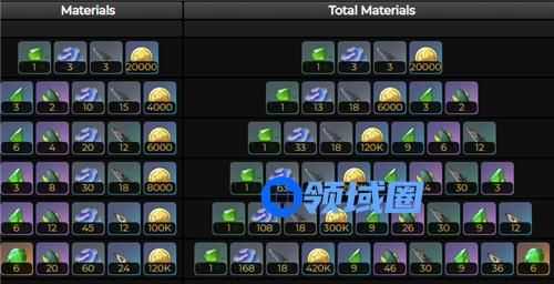 50级突破:生长碧翡断片x6,蕈王钩喙x4、树王圣体菇x20、锐利的箭簇x12,摩拉6w