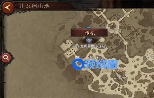 首先远古噩梦在【扎瓦因山地】,我们传送到【萨卡兰姆墓地传送站】。